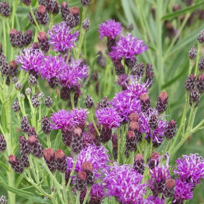 Vernonia lindheimeri (Woolly Ironweed) is a showy perennial that thrives where conditions are tough. This resilient plant can handle low fertility soil, dry climates, and resists deer and rabbits. Woolly Ironweed has a gentle upright habit, sturdy stems, and fine fuzzy foliage with an airy texture. Silvery buds open to clusters of bright magenta disc flowers in mid-to-late summer. Blooming for 6 weeks or more, the flowers nourish native bees and other pollinators. A North American native perennial from Texas and Northern Mexico, its common name comes from its iron-like qualities – both durability and seed clusters the color of rust.